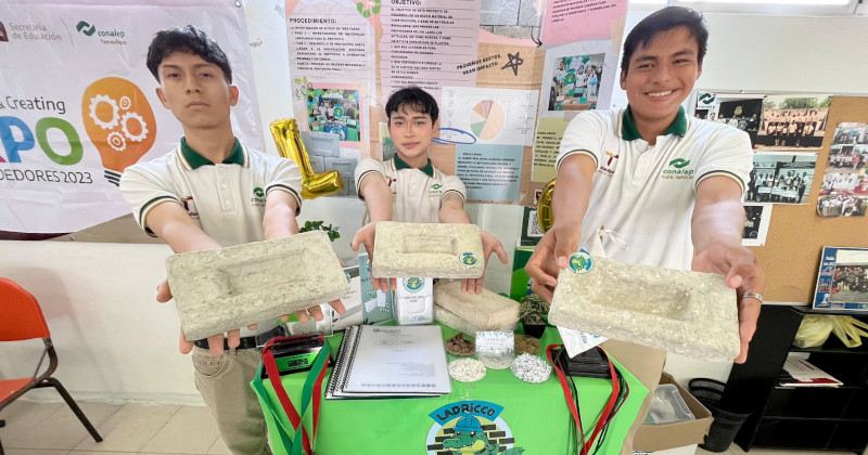 Alumnos del Conalep lograron concretar el prototipo de un ladrillo hecho a base de papel reciclado y hojas secas.