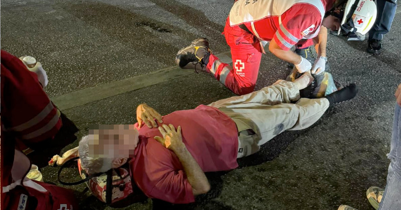 El hombre de la tercera edad resultó con múltiples golpes y paramédicos de la Cruz Roja se encargaron de brindar los primeros auxilios.