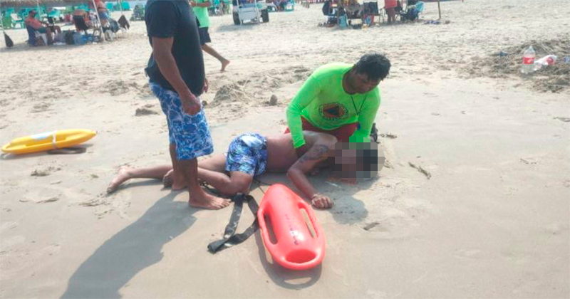 Rescatistas salvaron de morir ahogado a un joven de 25 años, originarios de la huasteca potosina en playa Miramar; tuvo que ser hospitalizado