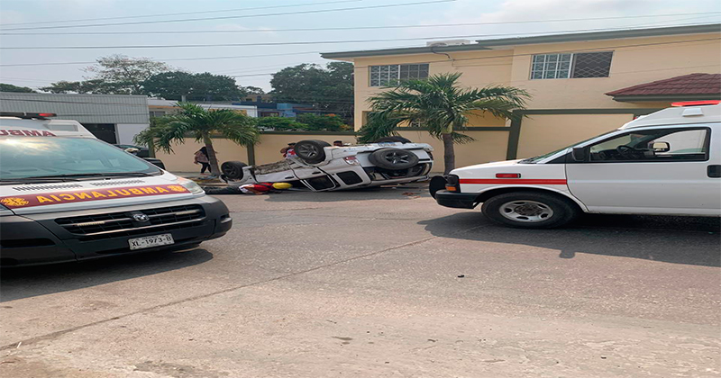 Vehículo termina volcado tras ser impactado por un automóvil negro, que lo hizo perder el control en la colonia Loma del Gallo de Ciudad Madero; por fortuna no hubo personas lesionadas de gravedad