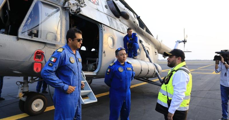 Por gestión del gobernador Américo Villarreal Anaya, ayer arribó a Victoria un helicóptero de la Secretaría de Marina que se sumará a los esfuerzos para apagar el fuego.