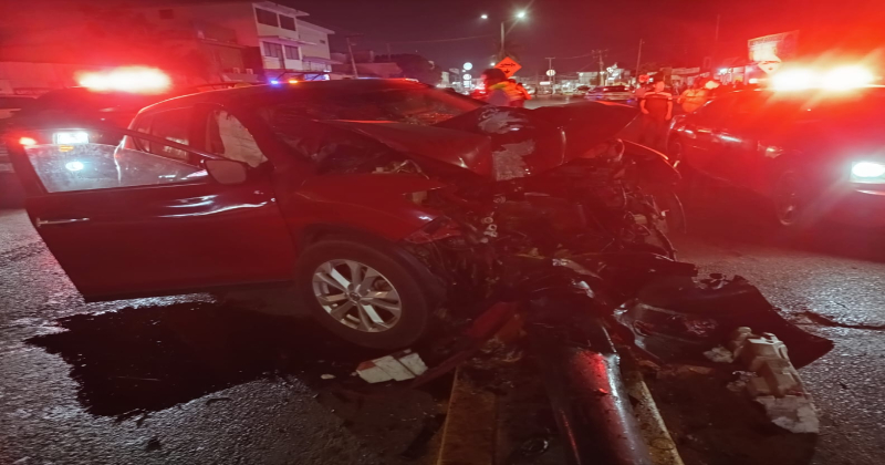 La unidad motriz involucrada en el percance que terminó destrozada de la parte frontal
