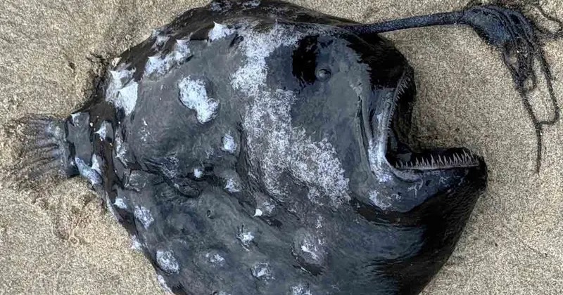 Los visitantes de Cannon Beach quedaron sorprendidos al encontrar el cuerpo de un pez negro de medianoche en las arenas blancas este mes.