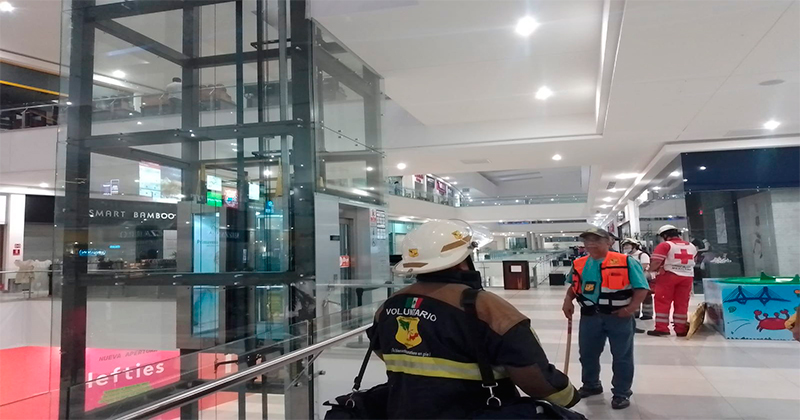 Fue casi una hora en el que dos mujeres y dos hombres quedaron suspendidos y atrapados dentro del elevador de cristal en la Plaza Galerías Altama