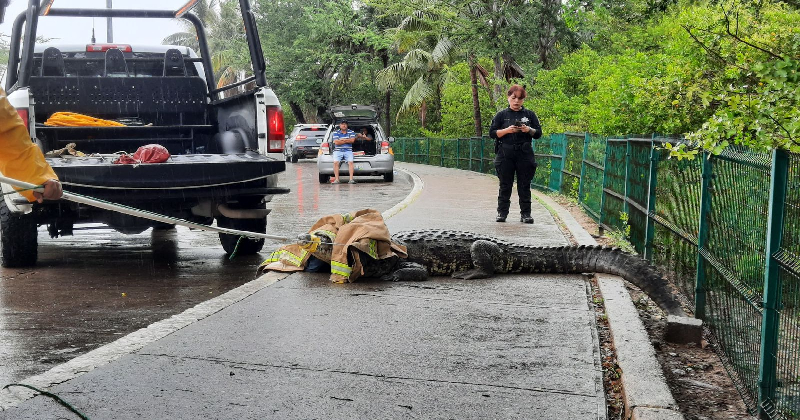 Vecinos de la colonia Barandillas, comentaron que el cocodrilo salió de un tubo que conecta con el canal a cielo abierto