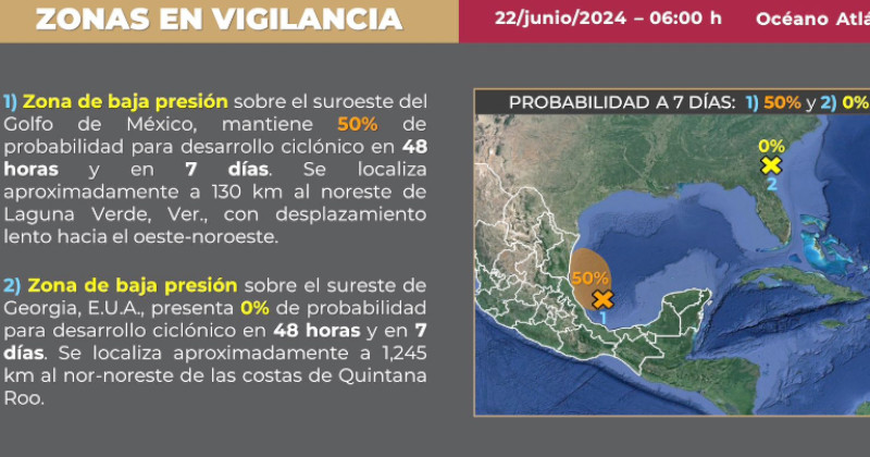 Dicho fenómeno tiene hasta el momento un 50% de probabilidades de convertirse en ciclón en las próximas 48 horas o 7 días.