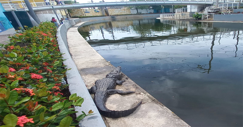 Los saurios subieron a la banqueta ubicada a la orilla del paseo La Cortadura, lo que tomó por sorpresa a personas que caminaban por ese sitio
