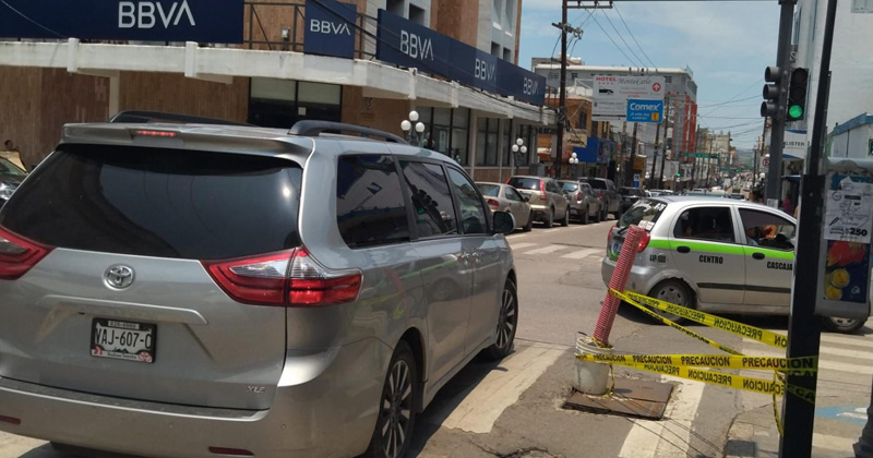 Las tapas metálicas oxidadas están en las líneas peatonales, obligando al peatón a cruzar por un lugar prohibido expuesto a un accidente
