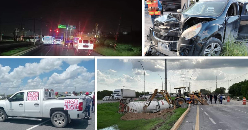 Los accesos carreteros a Reynosa se mantuvieron ayer jueves congestionados debido a bloqueos de productores agrícolas, pero también por un accidente, y dos situaciones de violencia.