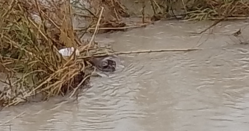 Un fuerte operativo se implementó en la zona de las escolleras para tratar de capturar al animal quien se perdía entre la palizada y el lirio acuático