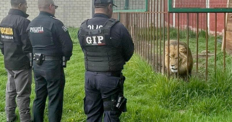 Rescatan a un león, mapaches y perros de un domicilio en el Estado de México