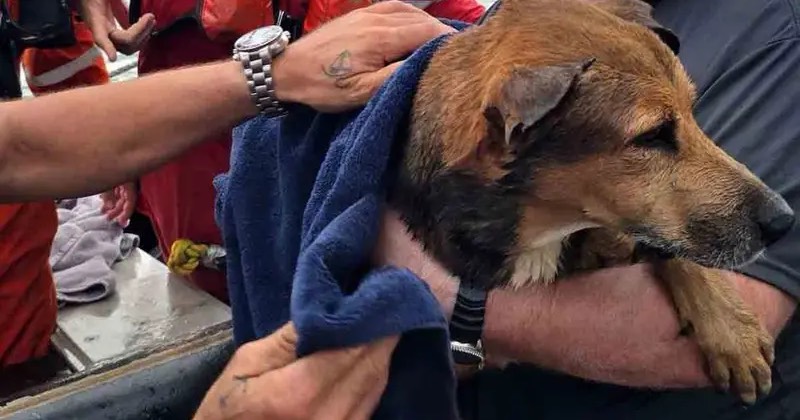Los trabajadores lograron subir al perrito a la embarcación, donde lo secaron y cubrieron con toallas para prevenir la hipotermia.