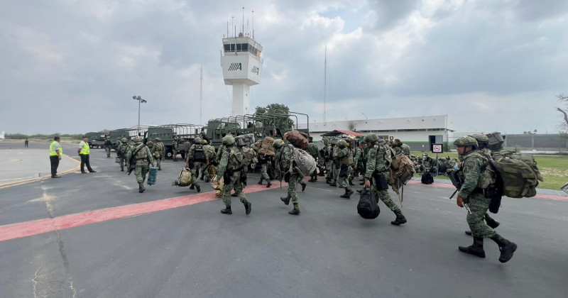 Los efectivos castrenses arribaron al Aeropuerto Internacional de Nuevo Laredo, en una aeronave de la Guardia Nacional, con la misión de colaborar estrechamente con las autoridades locales para disminuir las actividades ilícitas de los grupos delictivos con presencia en este municipio fronterizo.