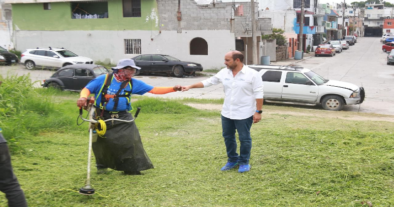 Trabaja Servicios Públicos de Tampico en el mantenimiento de parques y áreas verdes