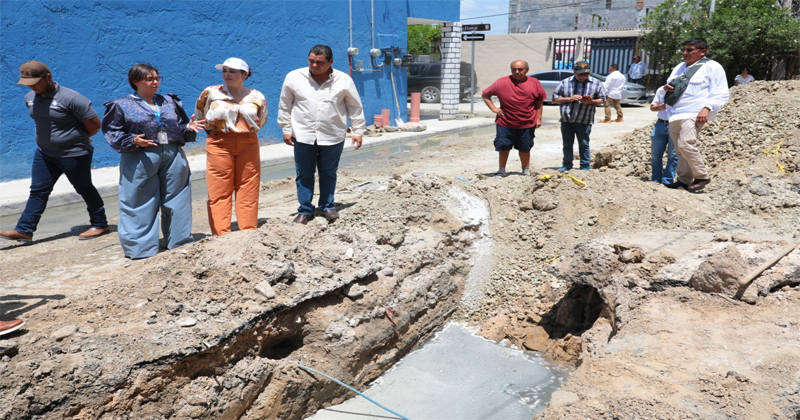 Durante el recorrido, la presidenta municipal acudió junto al secretario de Obras Públicas, Carlos De Anda Hernández y la gerente general de Comapa, Silvia Fernández a la reparación de cinco cuadras de líneas de drenaje sanitario en la colonia Matamoros.