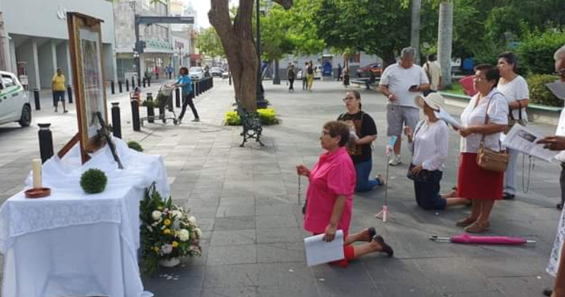 Laicos rezan frente a Catedral por burla a la última cena en JO