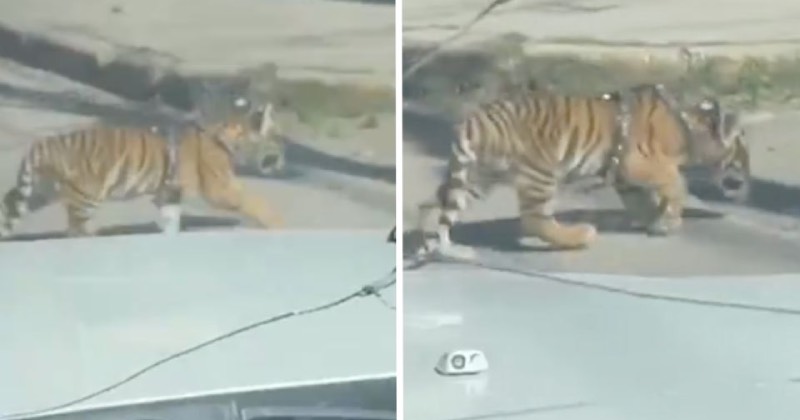 El cachorro fue captado en vídeo deambulando solo mientras cruzaba una calle durante un alto vehicular para después refugiarse en la sombra de las casas