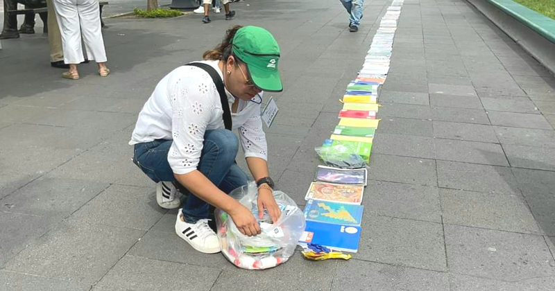El objetivo es crear un kilómetro de útiles escolares alrededor de la plaza con todo lo donado por los ciudadanos