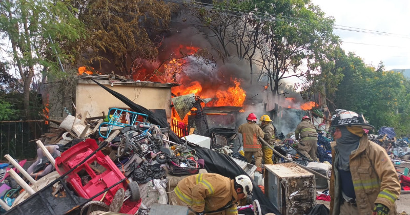 Una enorme bola de fuego consumió cientos de objetos acumulados dentro de una propiedad ubicada en la colonia La Presita.