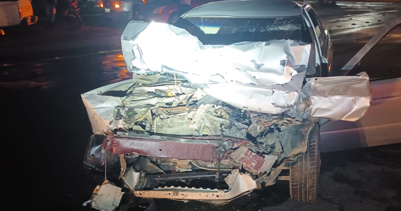 En su intento de alejarse del filtro vial, conductor se estrella atrás de una camioneta y deja su auto en pésimas condiciones
