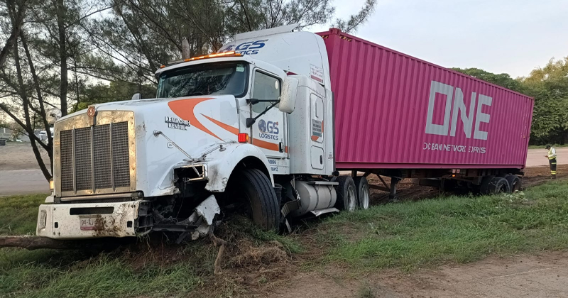 Tráiler queda destrozado al chocar con muro de contención en Altamira