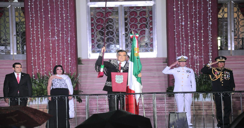 El gobernador de Tamaulipas encabezó la ceremonia del Grito de Dolores en la capital tamaulipeca