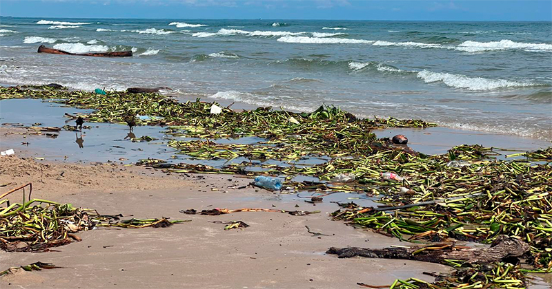 Lirio acuático llega a la playa y a la Laguna