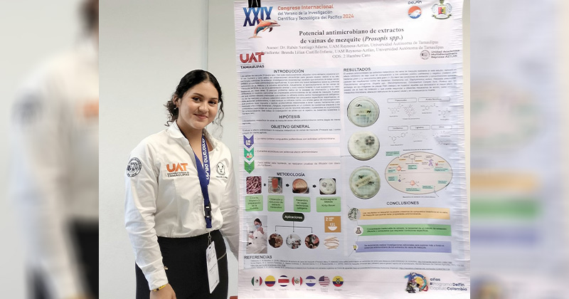 Alumna de la UAT trabaja en un innovador proyecto que explora el potencial antimicrobiano de un recurso forestal tradicionalmente subutilizado: las vainas de mezquite.
