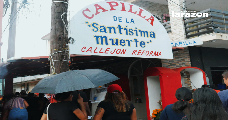 Con ofrenda y veladoras adornan su altar ubicado en el popular callejón Reforma.