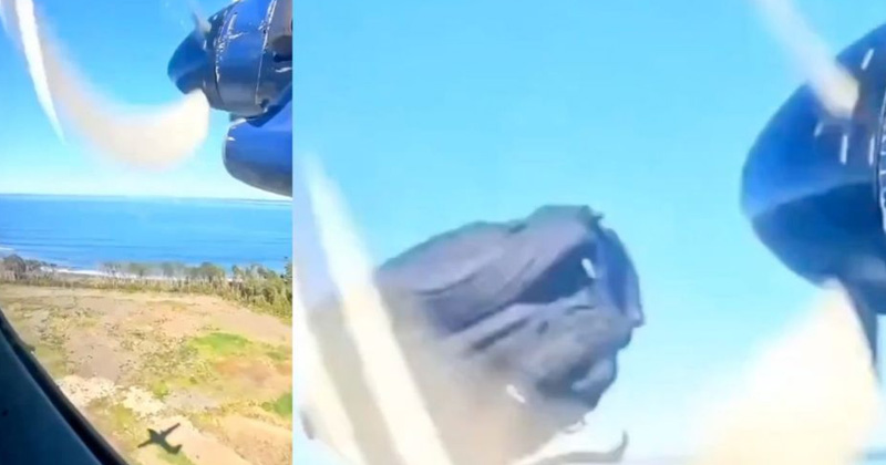 VIDEO: Mochila sale expulsada de avión y golpea un motor