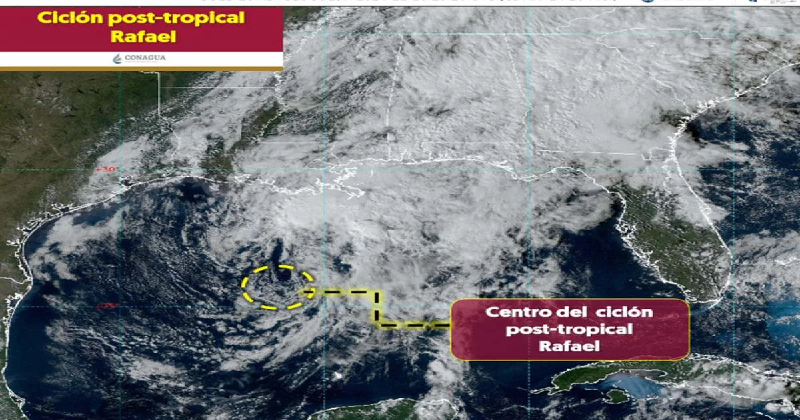 “Rafael” se debilitó a ciclón post-tropical en el Golfo de México, informó la Comisión Nacional del Agua (Conagua).