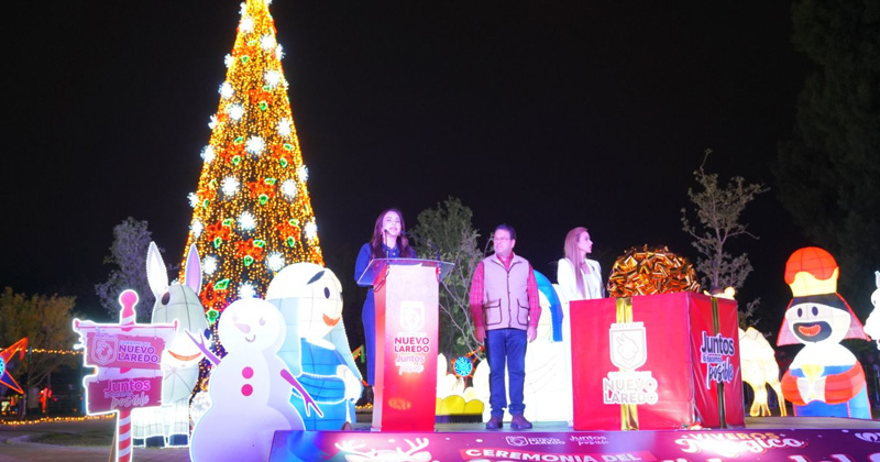 Enciende alcaldesa Carmen Lilia Canturosas junto a cientos de familias árbol de Navidad en el Viveros Mágico