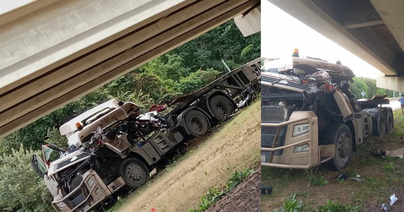 Conductor de tráiler queda prensado en aparatoso choque