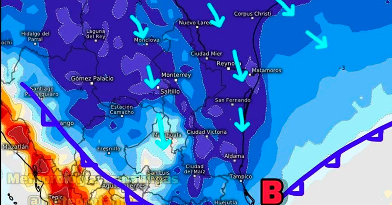 Además, para los próximos días se prevé la llegada del Frente Frío 14 y de aire polar ártico al país