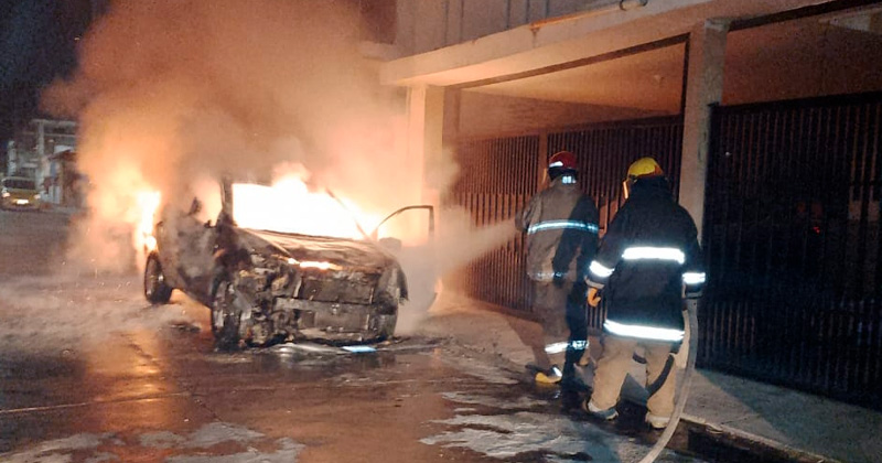 A distancia vio que el carro empezó a incendiarse mientras que él y vecinos del área llamaban al número de emergencias para reportar lo sucedido, acudiendo al lugar personal de Bomberos a bordo de una pipa.