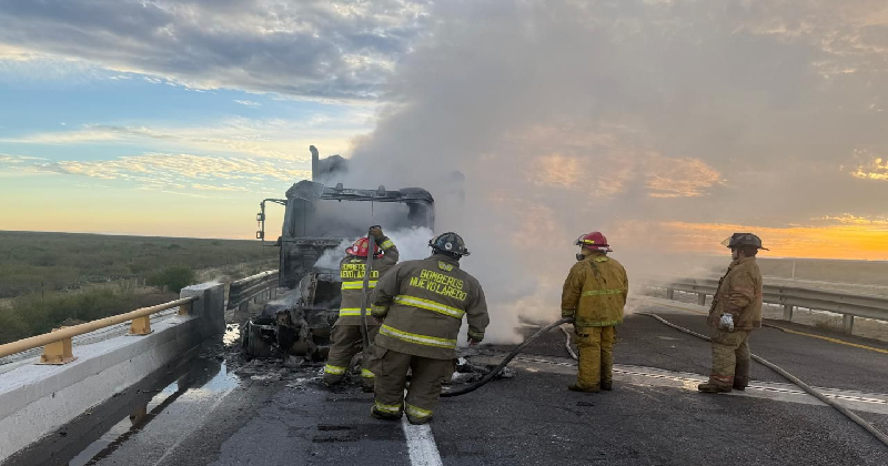 Arde trailer cargado con autopartes en la carretera Monterrey-Nuevo Laredo