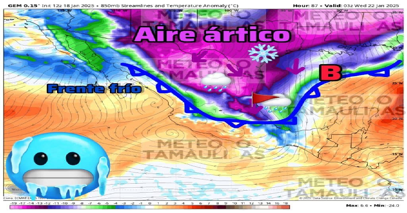Pronostican sensaciones térmicas hasta de -9° para el norte de Tamaulipas