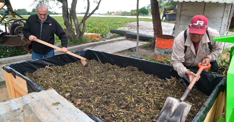 Con la finalidad de contribuir al cuidado medioambiental, el lirio acuático que ha invadido la Laguna del Chairel entrará a un proceso de trituración para convertirlo en composta.