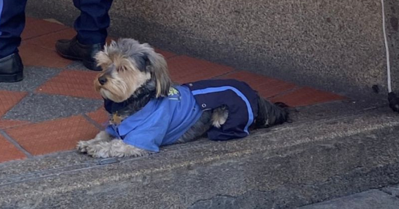 Perrito se hace viral por acompañar a su dueño al trabajo vestido como él