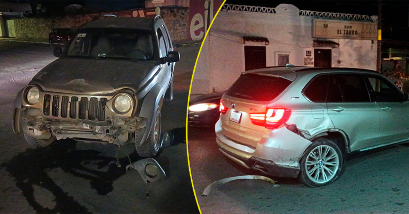 Vaya compromiso se echó encima el chofer de una Jeep Liberty, que omitió un alto e impactó a una camioneta BMW.