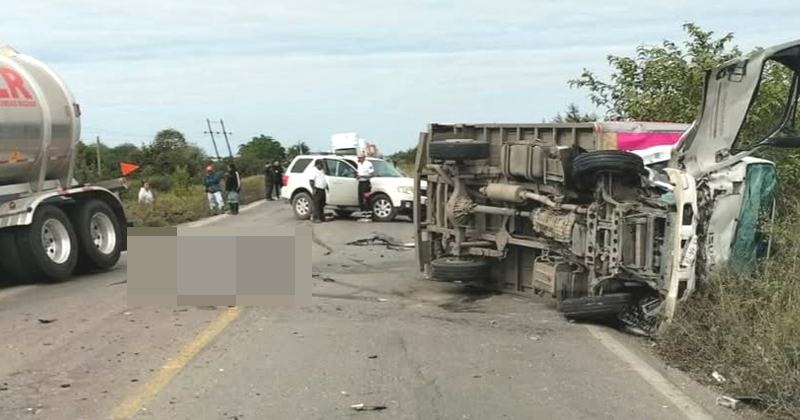 VERACRUZ, VER.- Un fallecido y cuantiosos daños materiales, fue el saldo de fuerte choque entre tres unidades, ocurrido en la carretera Tampico-Valles, en Cacalilao, Veracruz.