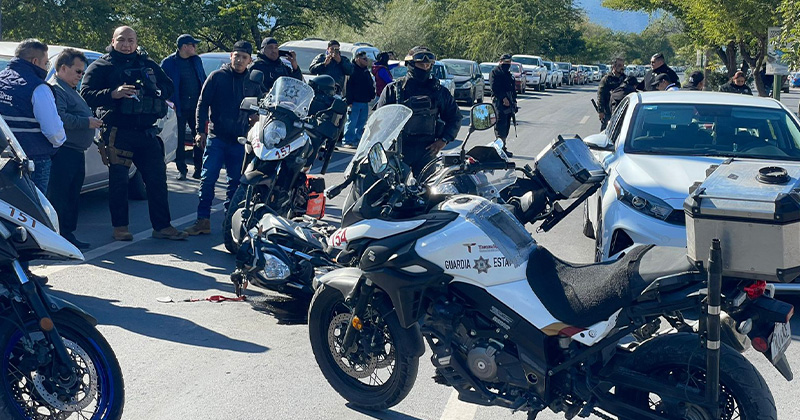 Policía motorizado persigue a repartidor que no hizo alto en el retén de revisión, y lo detiene al chocar contra el: resulta herido.