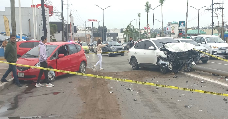 Uno de los autos fue proyectado contra un poste de alumbrado público, al cual derribó.