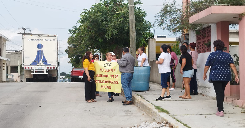 Vecinos de la colonia Carmen Romano están enfadados luego de que les colocaran postes de alta tensión muy cerca de sus hogares