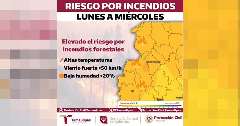 Entre el lunes y el miércoles, que se prevé un ambiente muy seco, temperaturas superiores a los 35°C y la presencia de vientos fuertes, lo que podría favorecer la rápida propagación del fuego