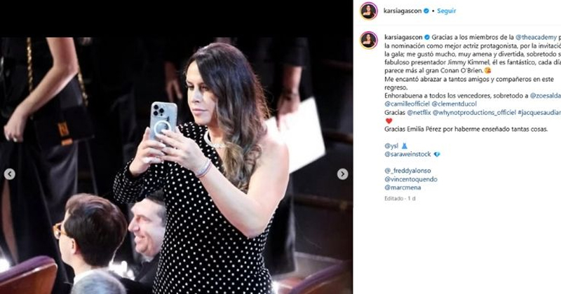 La actriz acudió a la ceremonia de la Academia de Artes y Ciencias Cinematográficas porque estuvo nominada en la categoría Mejor actriz por su trabajo en “Emilia Pérez”