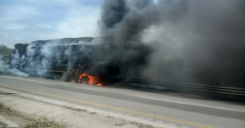 Tráiler es consumido por incendio en la Tampico – Valles
