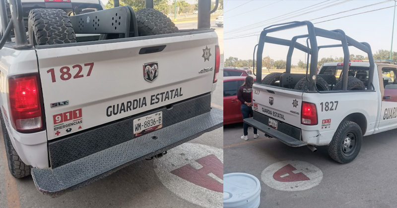 Una mala maniobra de reversa por parte de un elemento de la Guardia Estatal, ocasionó que chocara la patrulla que manejaba.