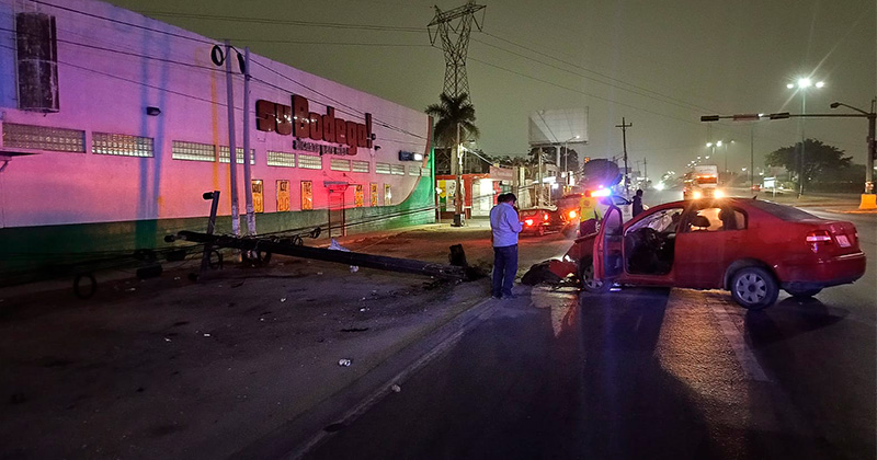 Provoca destrozos al chocar con poste de CFE en Altamira