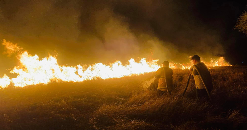El siniestro, que amenazaba con extenderse a terrenos de pastoreo, fue combatido con el apoyo de un camión motobomba y varias pipas de agua
